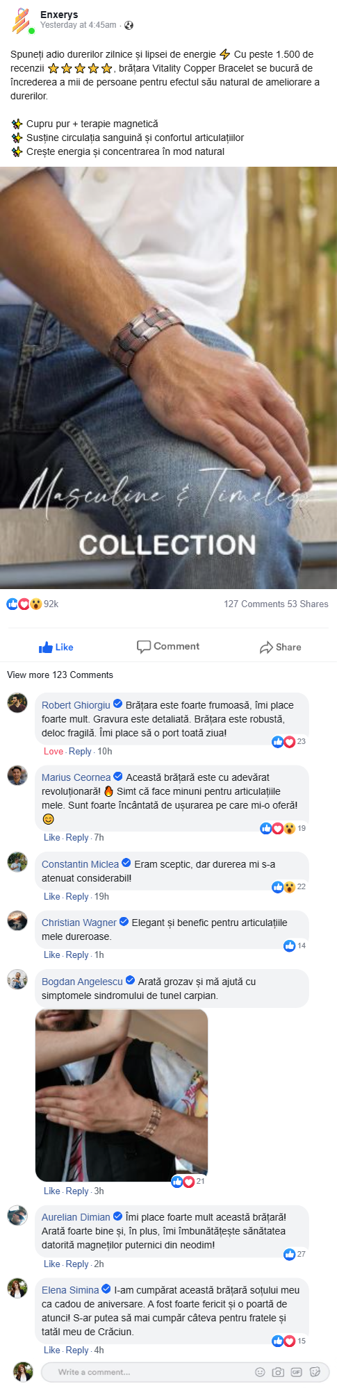Hipoalergenic! Fără plumb și nichel. Cupru solid 99,99% + 3 magneți din neodim la rând (45 de magneți, fiecare cu o putere de 3500 Gauss) pentru o eficacitate maximă asupra sănătății.